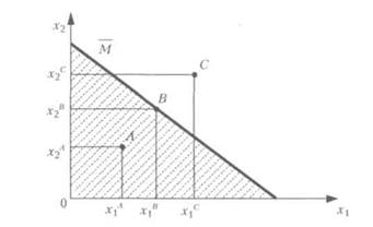 Как видно из рис. 1, совокупность финансово возможных планов ограничена прямой, соответствующей бюджетному ограничению. Планы потребления А