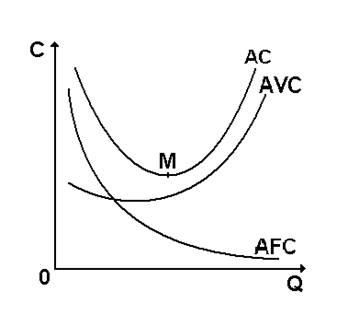 Кривая средних издержек зависит от кривых средних постоянныхиздержек (AFC) и средних переменных издержек (AVC). Постоянные издержки остаются неизменными на протяжении краткосрочного периода, поэтому по мере увеличения количества произведенной продукции величина средних постоянных издержек убывает.