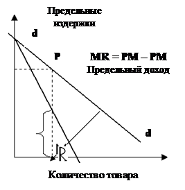 Линия спроса совершенного конкурента dd идет горизонтально, а несовершенного – наклонно (цена падает). Соответственно его предельный доход МR будет меньше цены РМ.