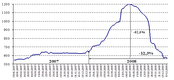 Падіння обсягів імпорту було спричинено значним зниженням внутрішнього попиту, обмеженням кредитування, падінням обмінного курсу гривні [20].