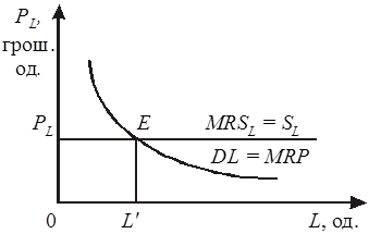 Правило залучення (наймання) факторів виробництва безпосередньо веде до функції похідного попиту виробника на кожен з факторів. Визначення функціональної залежності між кількістю одиниць фактора та його ціною за інших однакових умов здійснюється знаходженням відповідності між ціною ресурсу PL та його виторгом від граничного продукту. Звідси: лінія MRPL є лінією попиту виробника на ресурс (рис.1).