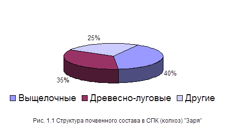 Таблица 1.1 Состав и структура земельного фонда в СПК (колхоз) «Заря»