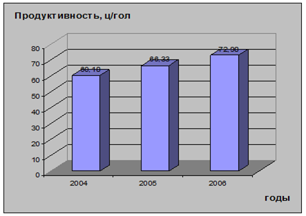 Выручка от реализации в 2006 году по сравнению с 2004 годом увеличилась на 47% или 10582 тыс.руб., в том числе за счет увеличения выручки от растениеводства на 27% или 724 тыс.руб. и от животноводства на 49% или на 9858 тыс.руб. Наибольший удельный вес в структуре товарной продукции занимает выручка от реализации молока 63,6% или 21152 тыс.руб. Это определяет специализацию хозяйства как молочную.