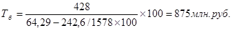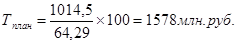 1578 / 83,4 × 100 = 1892 млн. руб.