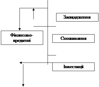 2. Доходи, що надходять у розпорядження домогосподарств, є платою їм як власникам ресурсів, за винятком податків. Сукупні витрати (попит), згідно зі схемою, формуються трьома потоками: споживанням домогосподарств, інвестиціями (що є перетвореною формою заощаджень) та державними витратами.