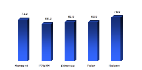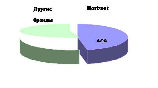 Как видно из вышеприведенных рисунков, продукция ОАО «Горизонт» находится условиях жесточайшей конкурентной борьбы. Поэтому основной задачей нашего предприятия в 2009 г. является сохранение и удержание доли HORIZONT на российском рынке, которая в 2008 г. по нашим оценкам составила около 5%.