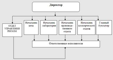 На рисунке 1 отображена предлагаемая организационная структура подразделения, реализующего на производственном предприятии функцию управления риском, где одинарными стрелками показаны командные связи между структурными элементами, а двойными - информационные связи.