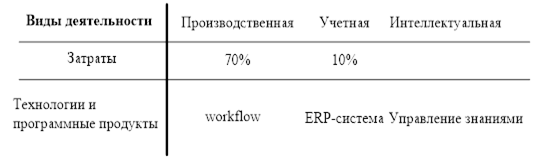 Интеллектуальные функции по стоимости в два раза превосходят учетные. Для их поддержки используются технологии управления знаниями (KM ‑ knowledge management), которые представляют собой совокупность инструментальных средств, предназначенных для хранения и извлечения знаний: