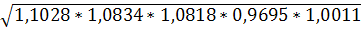Средний темп прироста = 1,04564 – 1 = 0,04564 или 4,563955%