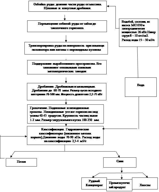 2. Перемещение отбитой руды от забоя до закаточного горизонта;