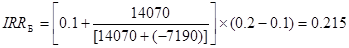 IRR= r1 + {f(r1) : [f(r1) - f(r2 )]}(r2 - r1),