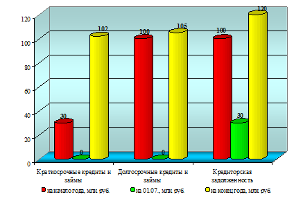 Долгосрочных кредитов и займов ресторан «Ажына» на начало периода и на 01.07. не имел, а на конец периода они составили 30 млн. руб.