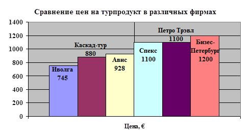 Во второй главе представлен в виде таблицы анализ рынка Санкт-Петербурга по турпродукту Австрии. Сравнивались 7 фирм по различным показателям.