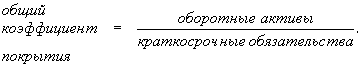 3. Общий коэффициент покрытия, который часто называют просто коэффициентом покрытия, дает общую оценку платежеспособности предприятия. Коэффициент покрытия представляет интерес для покупателей и держателей акций и облигаций предприятия. Его вычисляют по формуле