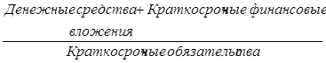 Сделать наиболее обоснованные выводы о платежеспособности предприятия позволяют относительные показатели ликвидности: коэффициент абсолютной ликвидности - отношение денежных средств и краткосрочных финансовых вложений к сумме краткосрочных обязательств; коэффициент быстрой (срочной) ликвидности - отношение суммы денежных средств, краткосрочных финансовых вложений и дебиторской задолженности, платежи по которой ожидаются в течение 12 месяцев после отчетной даты, к сумме краткосрочных обязательств; коэффициент текущей ликвидности (покрытия) - отношение суммы оборотных активов к сумме краткосрочных обязательств.