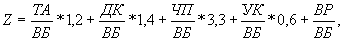 И, наконец, определяется вероятность банкротства предприятия. Эта характеристика дает представление об экономическом кризисе или кризисе руководства предприятия, которые, в свою очередь, привели его к финансовому кризису.