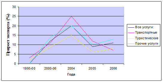 Одним из наиболее динамично развивающихся и перспективных секторов мирового рынка является торговля услугами, характеризующаяся устойчиво высокими темпами роста, превышающими в последнее десятилетие темпы роста международной торговли товарами.