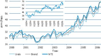 Останнім часом на світовому ринку сирої нафти, яка є ключовим ринком енергоносіїв, спостерігається ціновий бум. За період з 1998 р. — часу локального мінімуму на нафтовому ринку — до 2005 р., коли середньорічна вартість сирої нафти в поточних цінах перевищила 50 долл./барр., вартість одного барреля залежно від сорту сирої нафти виросла не менше чим у 4 рази. У поточному році зростання продовжилося: вартість російської нафти Urals в середньому за січень-квітень склала 59.5 долл./барр. (зростання на 35% рік до року), а в першій половині травня — 65 долл./барр.