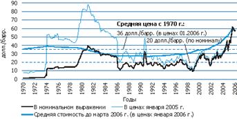 Використання в якості рівноважної ціни на сиру нафту середнього значення реальних цін за достатньо тривалий період стикається з проблемою вибору цього періоду. Так, з 1861 р. середня вартість одного барреля нафти на світовому ринку (у цінах 2004 р.) складає близько 24 долл./барр., з 1970 р. — 35 долл./барр., тоді як за останні десять років — 30 долл./барр. На думку експертів, середньорічні ціни вище 40 долл./барр. не можуть служити рівноважними в довгостроковій перспективі, хоча ОПЕК розглядає діапазон 40–50 долл./барр. як прийнятний — що влаштовує і виробників, і споживачів.