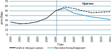 Стабільний рівень запасів вуглеводневої сировини в резервах, нарощування вільних нафтовидобувних і переробляючих потужностей приведуть в середньостроковій перспективі до зниження цін на сиру нафту до діапазону 40–50 долл./барр. У песимістичному сценарії, у разі нижчих темпів зростання світової економіки (посилених дією спекулятивного чинника), можна очікувати зниження цін на нафту нижче за рівень 40 долл./барр.