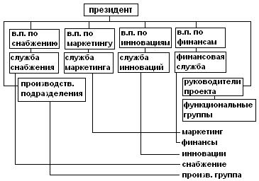 Матричную структуру используют фирмы, которые не хотят выбирать между региональными и товарным группированием. Менеджер по товару одновременно подотчетен вице-президенту по данной товарной группе и региональному вице-президенту.