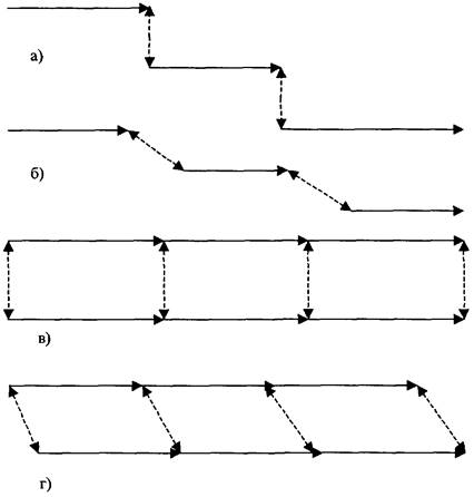 4. Установление временного сдвига между периодами реализации параллельных событий. Периоды осуществления аналогичных событий в разных параллельных процессах могут разделяться между собой четко определенным промежутком времени (рис.2г).