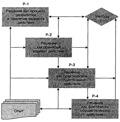 Представленная модель отражает наиболее явные проявления решения в процессе целенаправленной организации, что уже само по себе предполагает определенную классификацию организационной деятельности и ее составляющих. Основными направлениями такой классификации являются: целевое, содержательное, процедурное, группировочное и объектное представление разнообразия построения и осуществления реальной организационной деятельности.