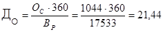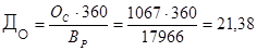 де Ос – оборотні кошти, тис. грн.; Вр – виторг від реалізації продукції, тис. грн.: 360 – кількість днів у році. Таким чином, оборотність оборотних коштів на підприємстві становить: