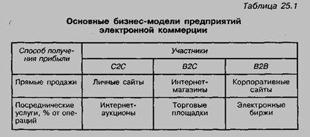 2) от прямых продаж. Наиболее известные бизнес-модели предприятий электронной коммерции представлены в табл. 25.1.