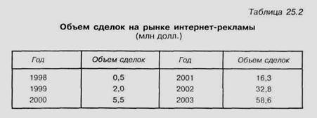 Рост рынка интернет-рекламы в России отражает мировые тенденции, с одной стороны, и внутренние позитивные экономические показатели - с другой. В табл. 25.2 приведены данные исследовательской компании топ