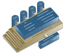 Чтобы планирование и бюджетирование служили нуждам управления эффективностью бизнеса (BPM - Business Performance Management) в масштабах предприятия, эти процессы должны быть интегрированы на нескольких уровнях. Интеграция должна основываться на трехуровневой модели аналитической компании IDC для аналитических приложений, в которой выделяются следующие три уровня: стратегический, специализированный и фундаментальный) и в которой задействована общая модель данных, обеспечивающая их единообразие.