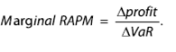 Для принятия решений менеджеры часто используют предельное значение RAPM, характеризующее прирост прибыли по отношению к приросту VaR и наглядно отражающее рентабельность той или иной сделки: