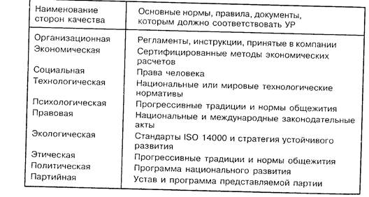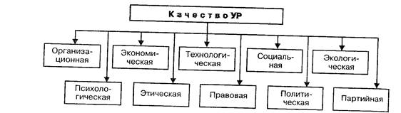 Качество управленческого решения может рассматриваться с организационной,, экономической, социальной, технологической, психологической, правовой, экологической, этической, политической и партийной стороны. Каждая из этих составляющих имеет свои правила, нормы, нормативы или стандарты (рис. 2).