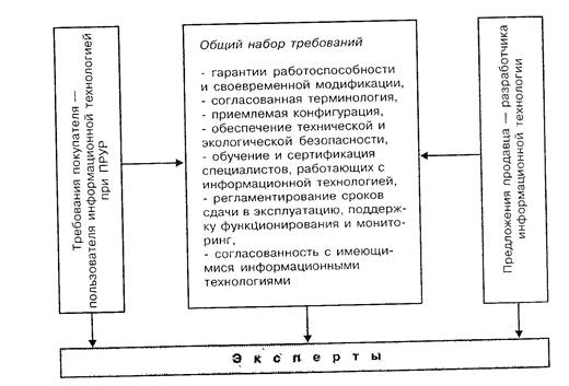 Информационная подготовка — это самая важная процедура ПРУР для достижения высокого качества. Основу системы качества составляет соотношение требований покупателя и предложений продавца. Оценку такого соотношения осуществляют эксперты (рис. 6). В случае достижения качества выдаются сертификаты, гарантирующие на некоторый период качество информационных технологий,