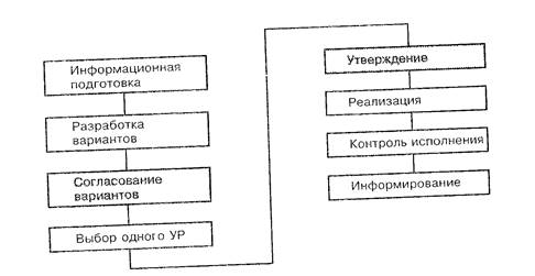 - разработка вариантов, выбор, реализация и контроль исполнения УР.