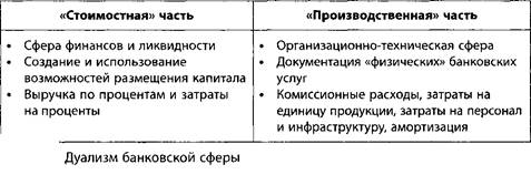 При построении системы контроллинга особое значение имеет организация системы учета. С одной стороны, это обусловлено необходимостью сбора и передачи внутрифирменной информации. С другой – играют роль особенности банковской сферы, в которой различают так называемые «стоимостную» и «производственную» области. На рис. 1.9. представлено сопоставление двух частей банковской сферы (см.: Schwager, 1998, S. 5).