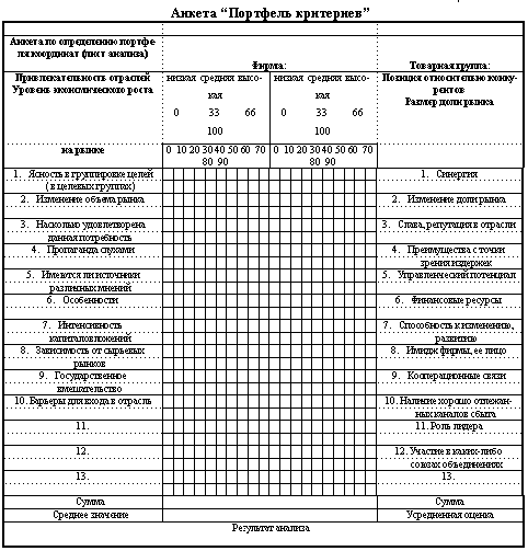 - анализ стратегического портфолио (матрица «продукт-рынок»);
