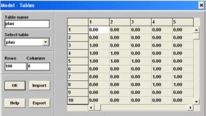 Следует отметить, что строки в таблице соответствуют машинам (станкам), а столбцы - типу заказа (вид продукта). Если значение ячейки ij=1, то это означает, что заказ j может быть обслужен машиной i, если же ij=0 - тогда не может.