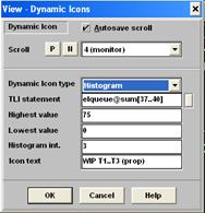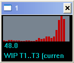 Иконки 1и 4 с текстомWIP T1..T2 (current) и WIP T1..T2 (prop) показывают соответственно суммирование длины очереди во всех элементах с 9 по 14 (elqueue@sum[9..14]) и с 37 по 40 (elqueue@sum[37..40]). Максимальное значение суммы в обоих случаях равно 75.