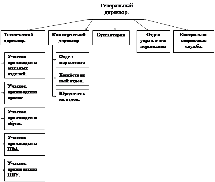 Основной массив работников непосредственно подчиняются техническому директору. Для производства множества видов продукции нужно выполнить большое количество обособленных операций, поэтому в организации профессиональный штат рабочих состоит из представителей разных профессий. Так, например, на участке по производству маканых изделий задействованы такие работники, как аппаратчик приготовления латексной смеси, аппаратчик приготовления химических растворов, изготовитель маканых изделий, сортировщик маканых изделий, дежурный электрик, дежурный слесарь. На транспортном участке задействованы водители, трактористы, аккумуляторщик, грузчик. Все рабочие должны выполнят свою работу в соответствии с техникой безопасности, обеспечивать нормальное функционирование технологического процесса.