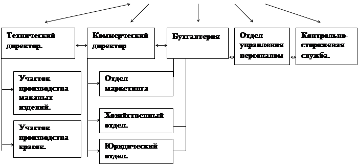 После сокращения производства и с учетом того, что в старой организационной структуре возникал эффект «бутылочного горла», необходимо построить новую организационную структуру. В ней будут более развиты горизонтальные и диагональные связи, и, следовательно, ход властных, финансовых, информационных потоков улучшится. Руководитель, например, отдела сбыта сможет решать оперативные задачи, связанные с техническими характеристиками продукта, непосредственно с техническим отделом, не отвлекая при этом коммерческого и технического директоров от более важных вопросов (новая структура организации помещена в приложение 2).