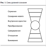 Первым шагом в этом направлении стала оценка культуры сотрудников по ценностям с помощью модели «Семь уровней личного и организационного сознания» (рис. 1).