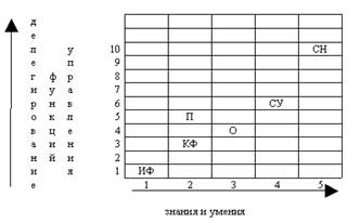 Типы команд: ИФ - интрафункциональные; КФ - кроссфунк-циональные; О - оперативные; В - виртуальные; П - предпринимательские; СУ - самоуправляемые; СН - самонаправляемые. Функции управления: 1 - оперативные производственные функции; 2 - формирование производственной программы; 3 - контроль качества; 4 - составление графика работы; 5 - контакты с поставщиками и потребителями; 6 - производственный учет; 7 - найм - увольнение; 8 - финансовый учет; 9 - образовательные; 10 - выбор направлений развития (определение перспективных планов). Знания и умения: 1 - технические; 2 - межличностные; 3 - командные; 4 - административные; 5- специальные.