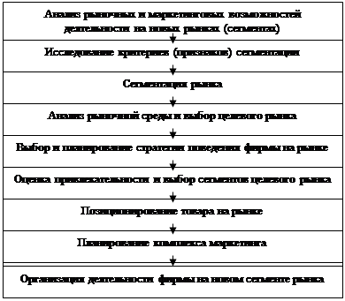 · разбивать рынок на относительно однородные группы потребителей (осуществлять сегментацию рынка) и ориентироваться на те сегменты, в отношении которых предприятие обладает наилучшими потенциальными возможностями, и выпускать продукцию с учетом особенностей отдельных сегментов рынка, характеризующихся определенным типом покупателей и их потребностями;