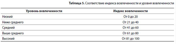 Таким образом, индекс вовлеченности данного работника выше среднего (табл. 5).