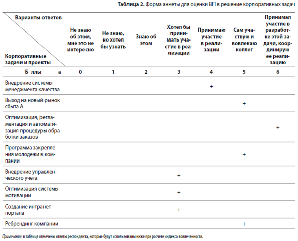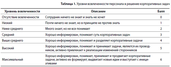 Рассмотрим, каким именно образом можно оценить вовлеченность в решение корпоративных задач с помощью анкетирования персонала.
