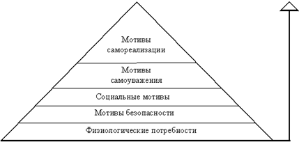 Под мотивом понимают побуждение человеческого поведения, базирующееся на субъективных ощущениях недостатков или личных стимулов. Мотивы человеческого поведения имеют определенную иерархию (она обычно называется "пирамидой Маслова") - рис.3.1