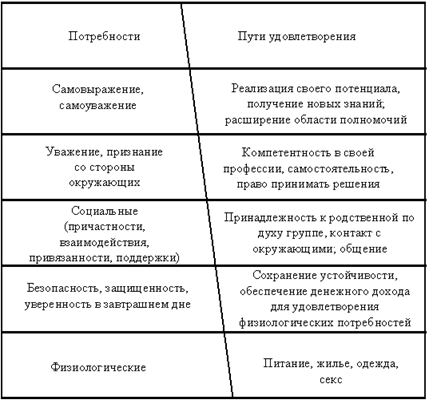 Пути удовлетворения потребностей по Маслову представлены на рис.3.2