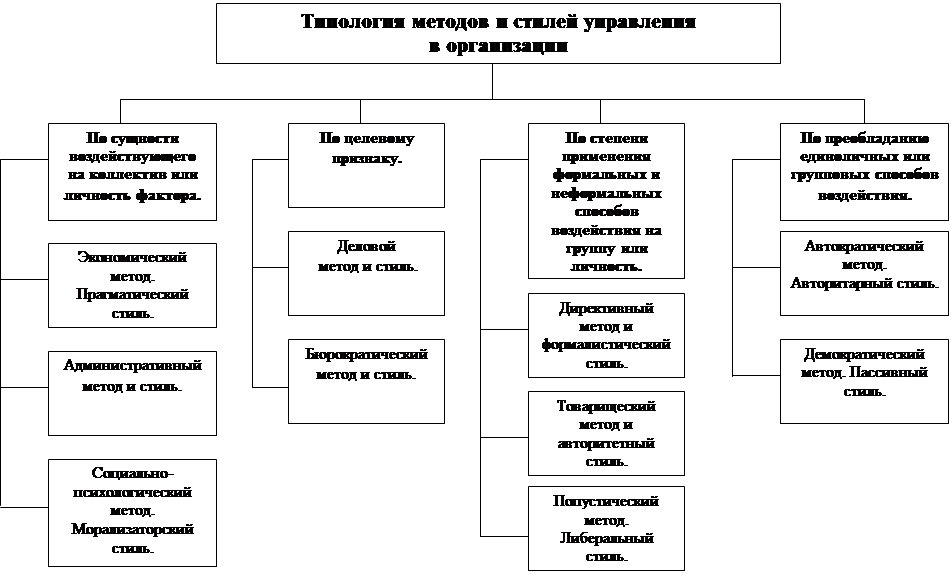 Методы выступают в качестве способов реализации принципов. Методы носят более альтернативный характер, возможен их выбор, замена одного другим. Методы управления также существуют объективно, их нельзя произвольно придумать, изобрести, они вытекают из принципов управления, обусловлены ими. Однако методы управления в отличие от принципов более вариативны. Задача руководителя как раз и состоит в том, чтобы с учетом конкретных условий и специфики управляемых объектов выбрать оптимальный путь, обеспечивающий наиболее полную реализацию принципов управления.