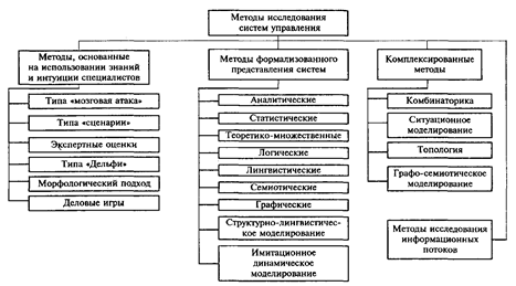 Всю совокупность методов исследования можно разбить на три большие группы: методы, основанные на использовании знаний и интуиции специалистов; методы формализованного представления систем управления (методы формального моделирования исследуемых процессов) и комплексированные методы.